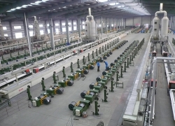 1.2.2、在拉絲作業(yè)時(shí), 8/450 拉絲機(jī): 1#~4#拉絲卷筒由變頻電機(jī)經(jīng)二級皮帶傳動后驅(qū)動,5#~10#拉絲卷筒由變頻電機(jī)經(jīng)一級皮帶傳動后驅(qū)動。線材穿過拉絲模后在卷筒表面上纏繞一定的圈數(shù)、然后再穿入下一道拉絲模,以此類推。在各卷筒之間的模盒上設(shè)有張力裝置,通過鋼絲張緊力的變化使擺輥擺桿擺動,然后由傳感器向電控柜發(fā)出信號來達(dá)到調(diào)控相鄰卷筒之間的轉(zhuǎn)速差,以完成連續(xù)拉拔的工藝過程。