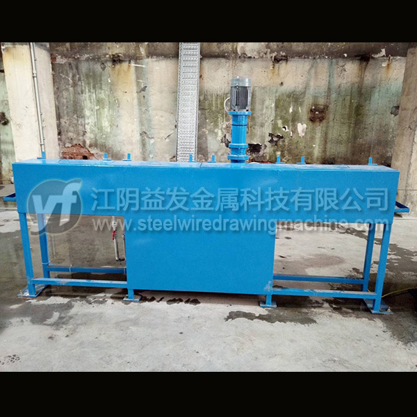 箱體采用Q235板焊接而成,內膽采用314不銹鋼板焊接防止硼砂水受銹蝕的污染,保持硼砂的純潔度,保持鋼絲涂硼效果。兩層之間有40mm的保溫棉。不銹鋼電加熱管12KW,有熱電偶控制溫度,1.5KW的提升泵用于硼砂水上下循環,相當于自動攪拌,箱體上層液體采用了多次溢流方式,出口處高壓氣吹用于調節鋼絲表面的硼砂量。長度2500MM,寬度500mm,高度1100mm,重量800Kg。